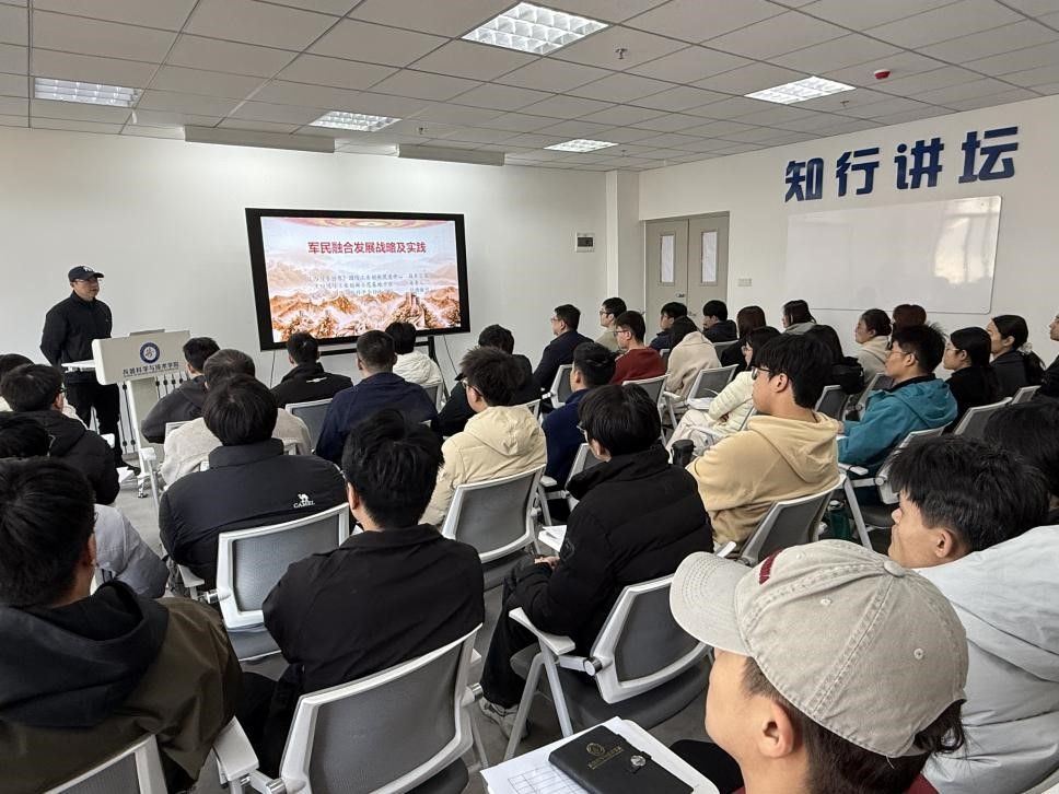 12月1日下午,由beat365中文官方网站承办的“知行讲坛”在教八-406教室成功举办。本期讲坛特邀秦创原国防工业促进中心研究员级高级工程师刘凯担任主讲嘉宾,作题为“融合发展研究与实践”的学术报告。报告会由beat365中文官方网站副院长吴杰主持,五十余名师生参加了此次学术报告。