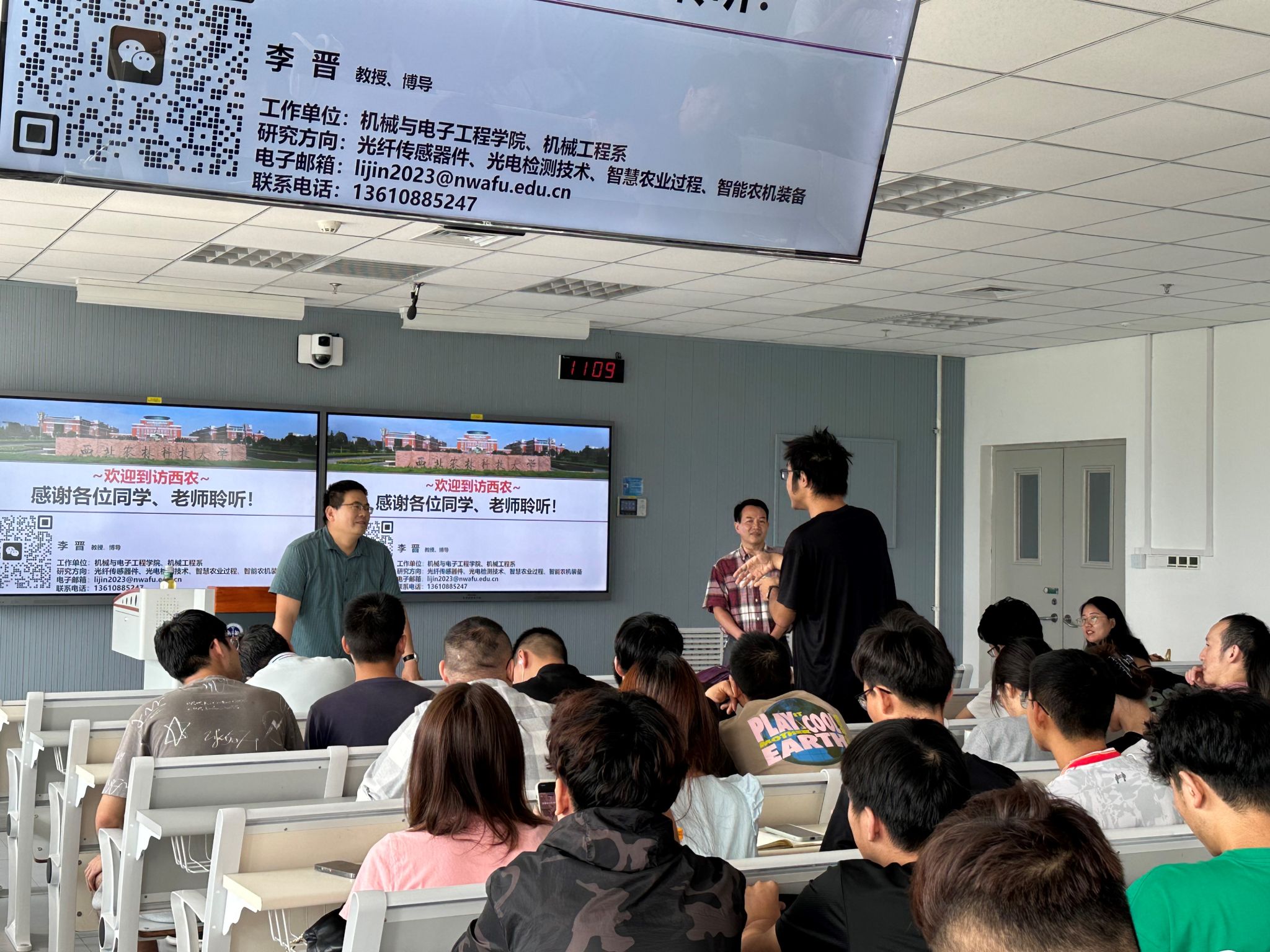 2024年9月26日上午,西北农林科技大学李晋教授应邀为我校师生作题为“新型微纳光纤传感器件设计”的学术报告,兵器学院院长肖锋、党委书记蔡长龙、学院教师及研究生参加了报告会。