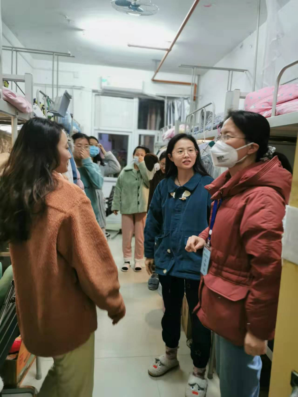 抗疫就是命令,防控就是责任。12月27日,突如其来的防控升级给学生防疫工作带来极大考验,需要入驻学生宿舍及时展开大量工作,身为党员的田润妮老师接回孩子交给家里老人照管,义无反顾的响应学院号召,连夜赶赴校区,代替怀孕的研究生管理秘书入住校园公寓。