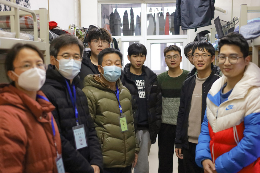在研二学生宿舍,马保吉书记和郭永春院长叮嘱同学们要勤于打扫宿舍卫生,保持宿舍干净整洁。郭院长强调,如果这段时间宿舍的学习生活存在任何问题,都可以及时反馈给学院,学院会协助同学们解决遇到的问题。