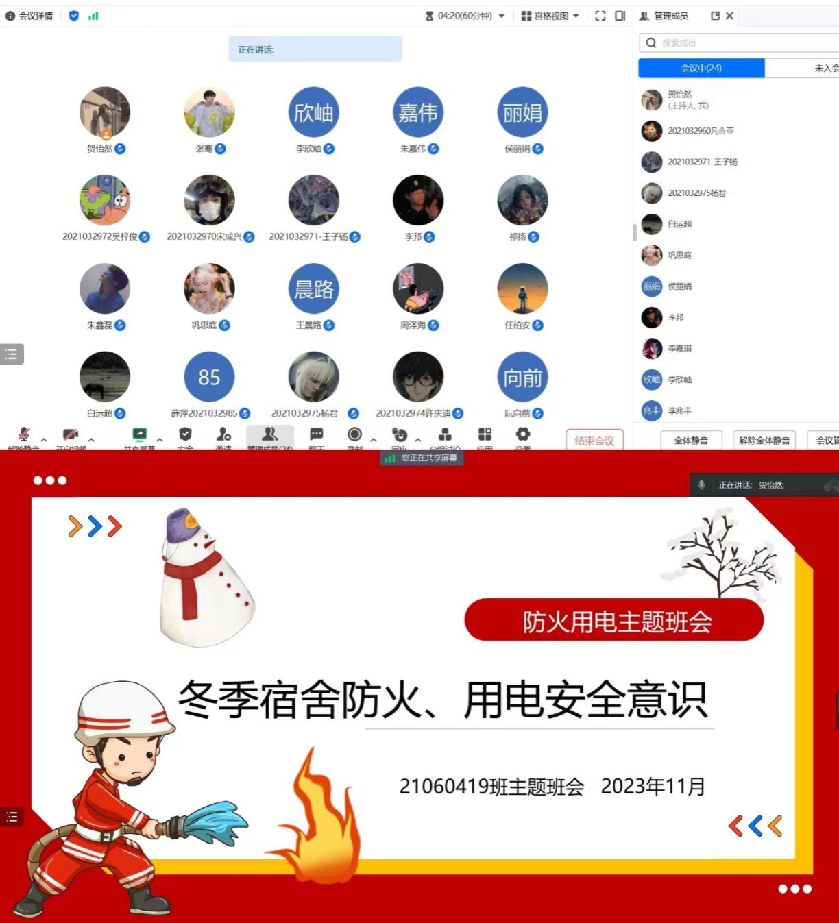 为了提高学生的防火、用电安全意识,确保校园的安全稳定,beat365中文官方网站各班级于近日通过线上线下相结合的方式召开了以“防火、用电安全”为主题的班会。
