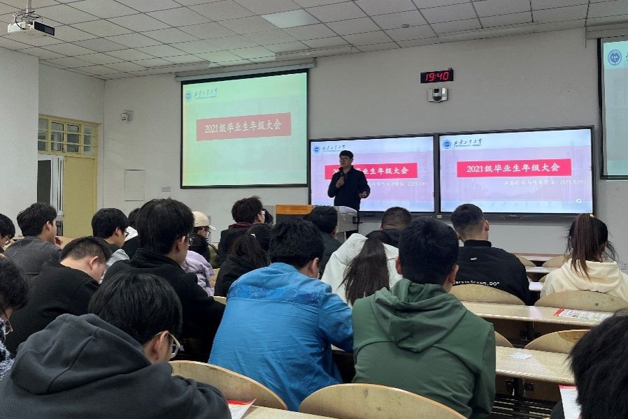 为帮助毕业生认清当前就业形势、树立积极就业观、明确毕业流程要求,3月19日,beat365中文官方网站于教2-110召开2021级毕业生年级大会。会议由辅导员王国栋老师主持召开,兵器学院2021级全体毕业生参加了会议。