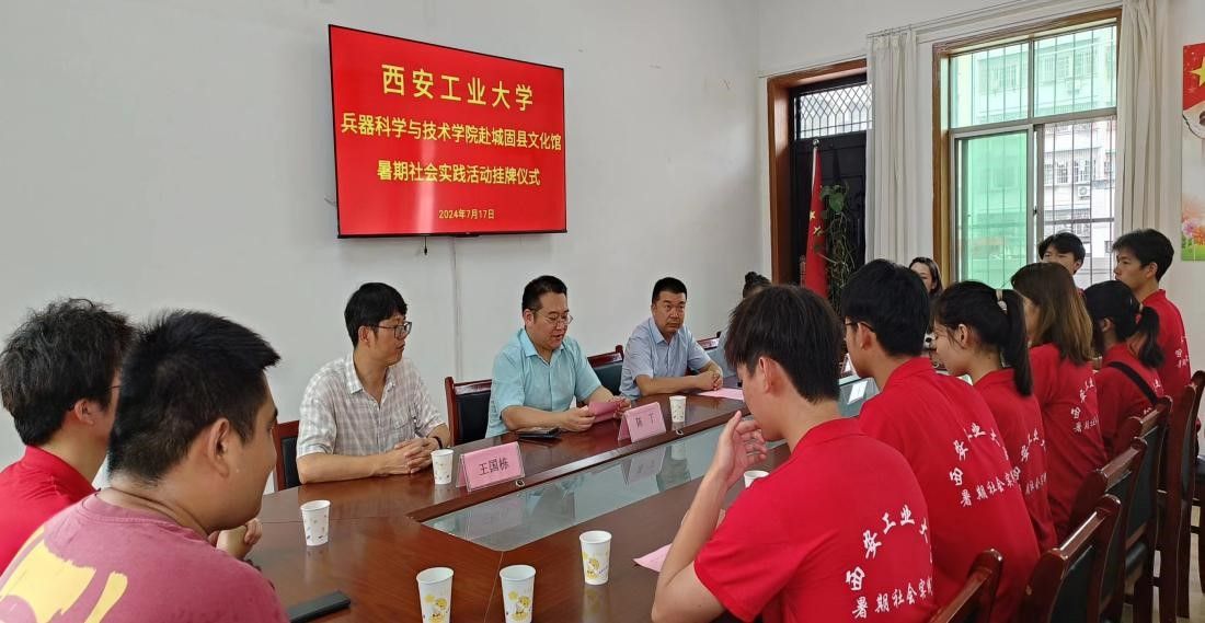 兵器学院院长助理陈丁、辅导员王国栋于2024年7月17日赴城固县文化馆进行社会实践挂牌仪式,参加此次挂牌仪式的有城固县文化局局长周茂来、副局长孟凡一以及beat365官网暑假社会实践的学生们。