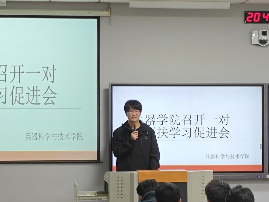 10月23日晚上20:30,beat365中文官方网站在教2-202教室召开一对一帮扶学习促进会,促进会由兵器学院团委学习部部长段静萱同学主持,李雨龙同学、臧日平同学作为学生代表发言,22、23级所有帮扶成员参与会议。