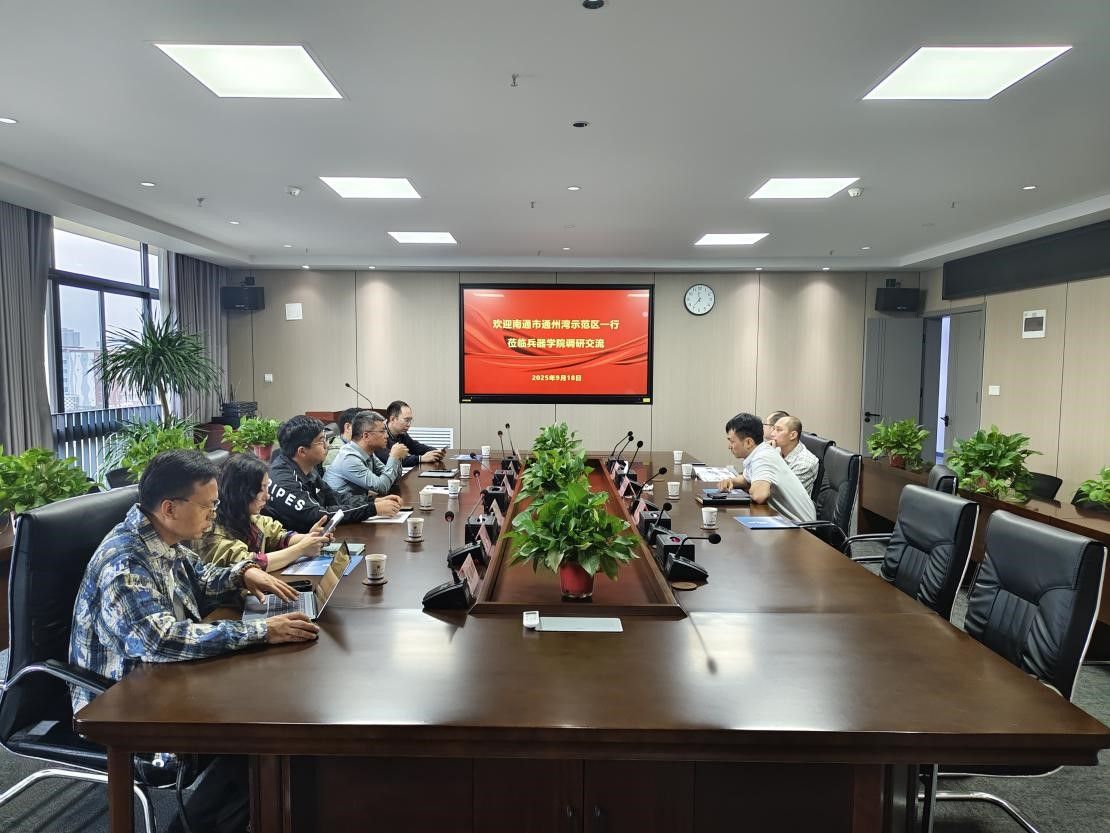 2025年9月18日,南通市通州湾示范区一行访问beat365中文官方网站,示范区招商局长陆骏骅、财政金融局长周海峰出席会议,双方围绕产学研合作、技术成果转化及区域产业升级开展座谈交流。兵器学院党委副书记梁伟樯、科研团队代表及企业合作方参会。